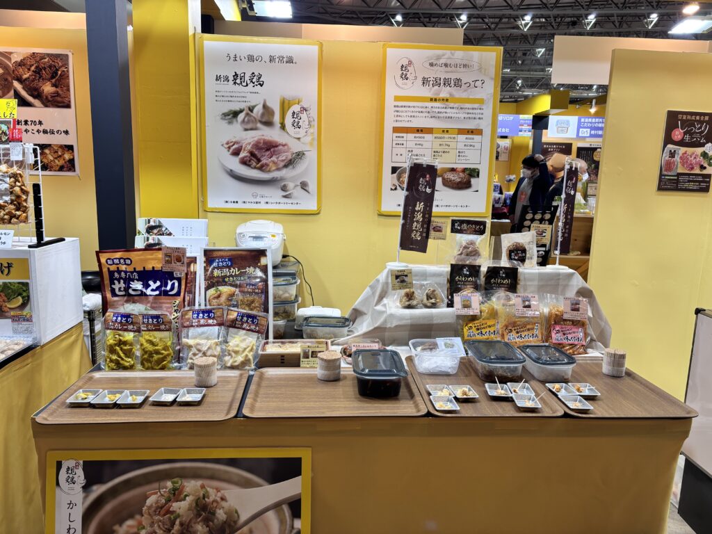 今年は新潟親鶏をはじめとした親鶏商品や、業務用惣菜向け商品、展示会でお披露目の新潟名店せきとり監修の商品など多岐に渡ったラインナップで展示をさせていただきました。